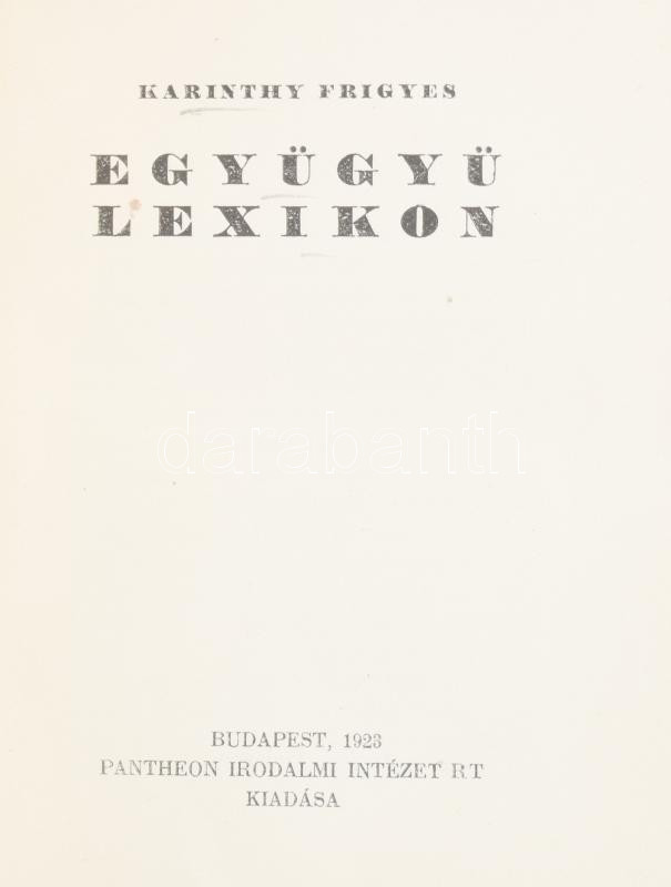 Karinthy Frigyes: Együgyü lexikon. Bp., 1923, Pantheon,(Globus-ny.), 1... https://www.darabanth.com/de/489-Fernauktion/489.0/Bucher/Bucher-Andere-kuriositaten~2000028/Karinthy-Frigyes-Egyugyu-lexikon-Bp-1923-Pantheon-Globus-ny-113plus2-p-Atkotott-felvas~II3188658