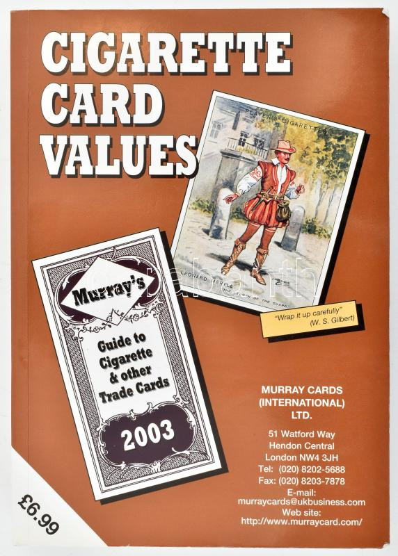 Cigarette Cards Values (Cigarettakártyák értéke). London, 2003, Murray Cards, kiadói papírkötés, angol nyelven. Képekkel rendkívül gazdagon illusztrált kiadvány, mely a kezdetektől sorra veszi a gyűjtői cigarettakártyákat és értéküket.