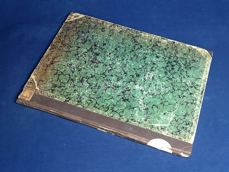 Kissé sérült gerincű korabeli félvászon kötésben, márványmintás festésű lapszélekkel, a gerincen és az első kötéstáblán egykori katalóguscímkékkel.
