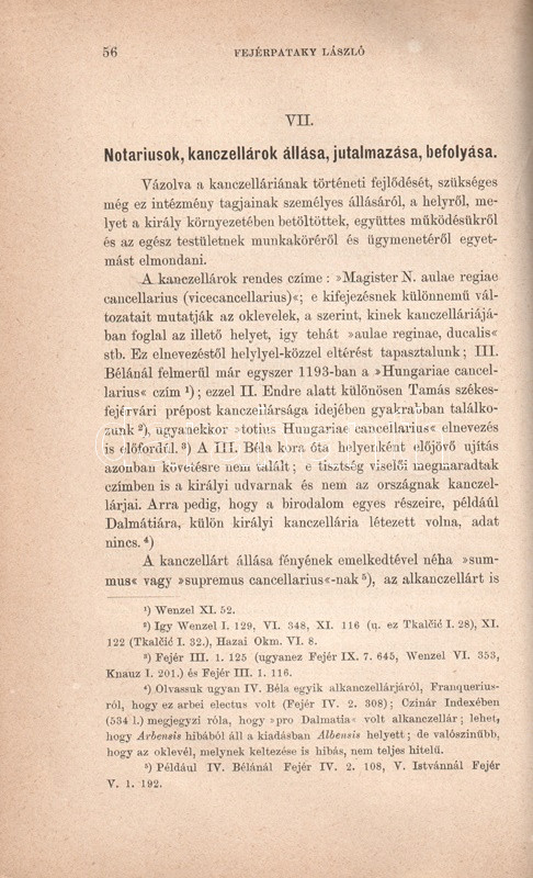 Fejérpataky László (1857-1923) történész, levéltáros, a hazai oklevéltan korszakos jelentőségű megújítója. Pályája elején a pannonhalmi alapítólevél oklevelét vizsgálta, 1885. évi műve az első hazai oklevéltani munka, amely egy egész korszak oklevéladási gyakorlatát vizsgálja. A munka nem csupán az okleveleket gondozó kancellária szervezeti fejlődéséről tesz közzé értékes anyagot, hanem az Árpád-kori királyi kancellária személyi állományát is lajstromozza.