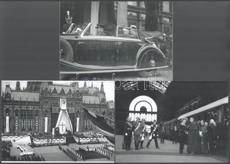 1938 Horthy Miklós kormányzó fogadja a pápai küldöttséget Budapesten, akik vélhetően az eucharisztikus kongresszusra érkeztek, 3 db modern nagyítás, jelzés nélkül, 15x21 cm