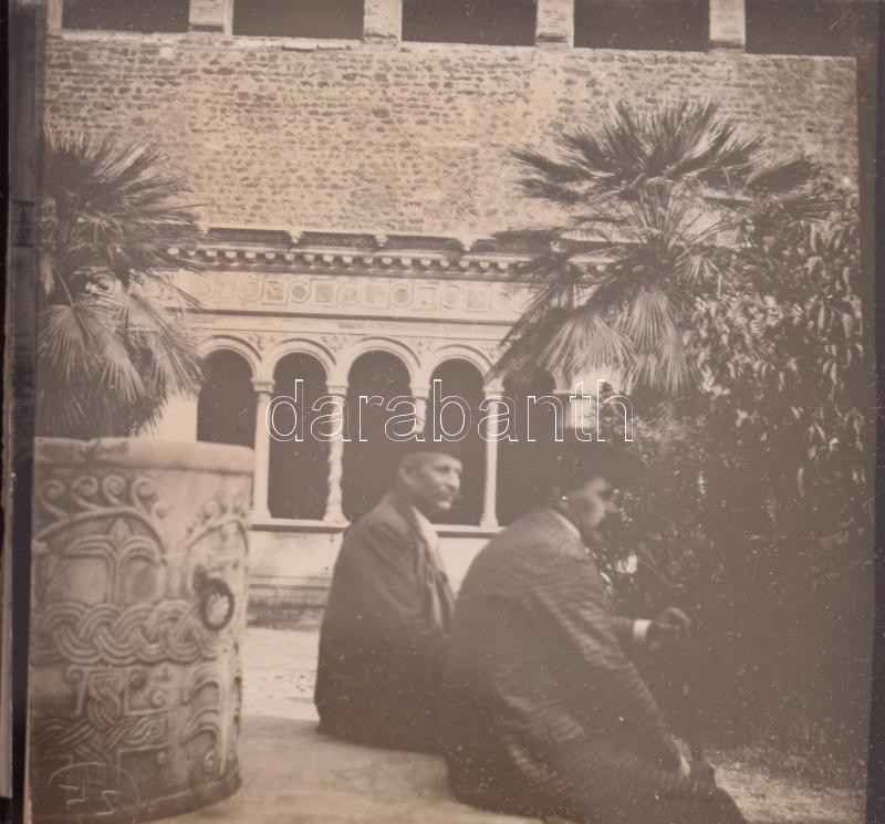 cca 1900 Olaszország Róma: ókori és középkori épületek. Egy doboz üveg dia pozitív, magyar utazó által készített felvételek egyiken az utazó maga is látható 11 db 9x9 cm / cca 1900 Rome, Italy buildings. A box of glass slide positives, photographs taken by a Hungarian traveler 11 pcs 9x9 cm