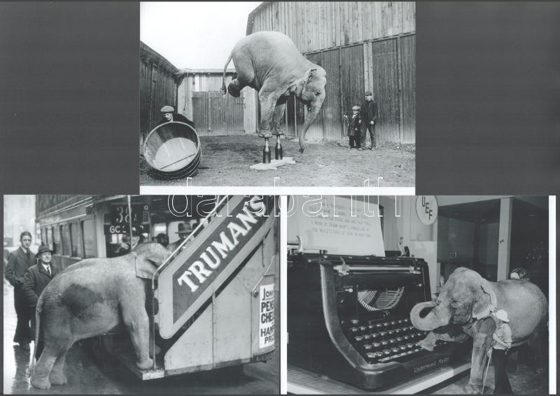 cca 1928 "Elefántos mutatványok", "Kankovszky?s Hungarian Presse Photographic Exchange" sajtófotó ügynökség hagyatékából (kapott csereképek gyűjteményéből) 3 db modern nagyítás, jelzés nélkül, 15x21 cm