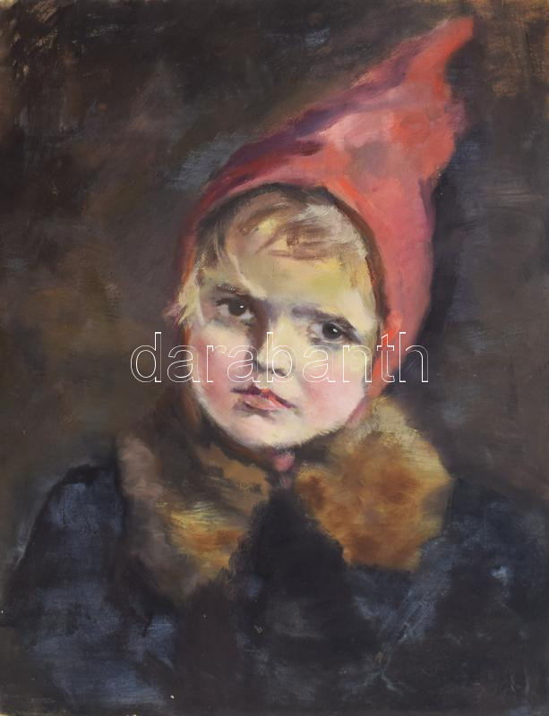 Jelzés nélkül, XX. sz. első fele: gyerek portré (kétoldalas mű, hátoldalán bibliai jelenet). Olaj, karton, 56×43,5 cm