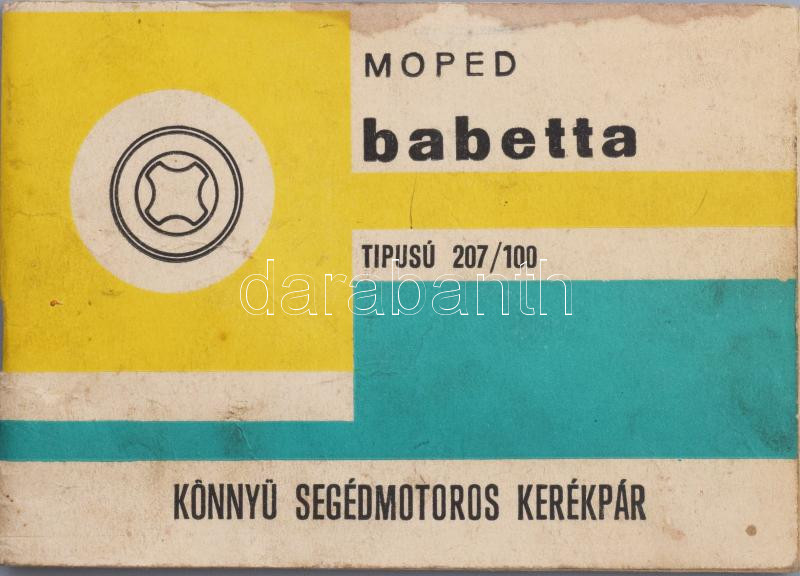 cca 1975 Babetta 207/100 típusú könnyű segédmotoros kerékpár (moped) kezelési és karbantartási utasítása. Tűzött papírkötés, foltos borítóval, helyenként koszos lapokkal, 48 p.