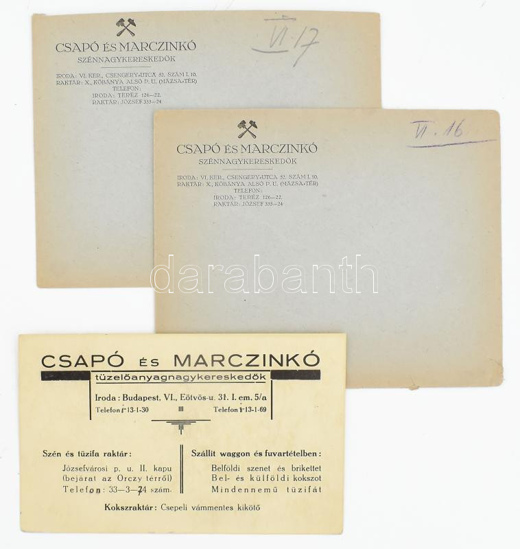 Csapó és Marczinkó budapesti tüzelőanyagnagykeresdők 2 db reklámos bor... https://www.darabanth.com/de/489-Fernauktion/489.0/Kunst-Dokumente-andere-Sammelgebiete/Werbungen~1000005/Csapo-es-Marczinko-budapesti-tuzeloanyagnagykeresdok-2-db-reklamos-boritekja-2-db-reklaml~II3189269