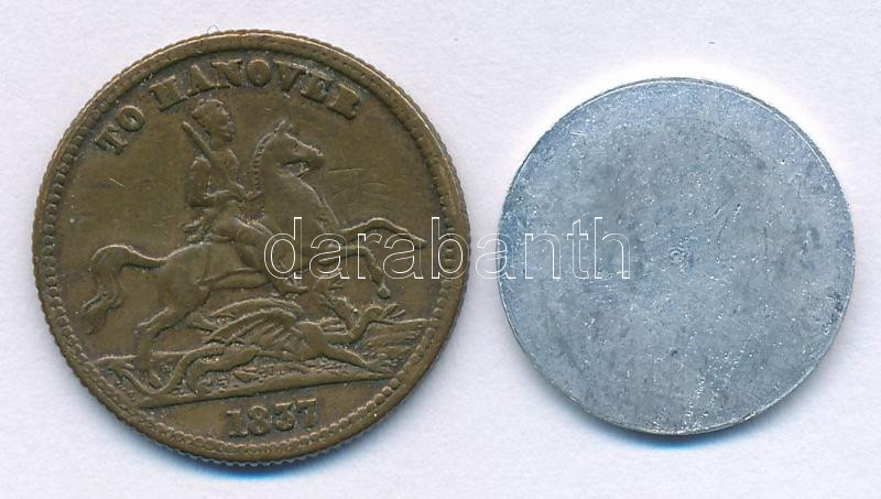 Beschreibung: Nagy-Britannia 1867. "Viktória királynő / To Hanover 1837 " (Cumberland Jack) sárgaréz zseton (22,5mm) + DN "Shakespeare 1564-1616 " egyoldalas Al emlékérem (19mm) T:VF
