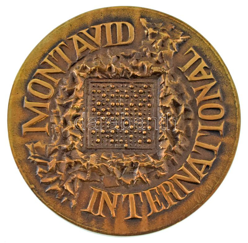 DN "Montavid International" öntött bronz emlékplakett, szign.: Csontos L., eredeti tokban, benne aranyozott lemezplakett "Prihradny Tamás - International Veteran Tennis Championships of Hungary - 15" gravírozással. Prihradny Tamás (1929-2021) Vasas Sport Club Életműdíjasa, tenisz szakosztályának kultikus alakja volt. T:AU patina