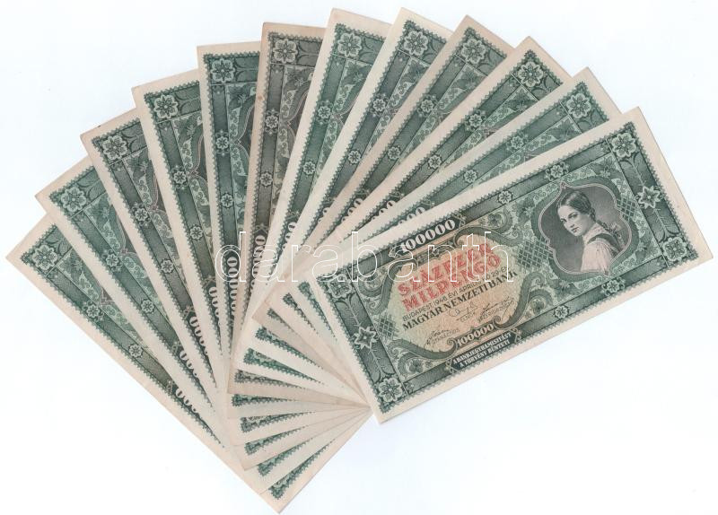 1946. 100.000MP (12x) mind különféle sorozatszámokkal "B 039 - B ... https://www.darabanth.com/de/489-Fernauktion/489.0/Numismatik/Ungarische-Banknoten~2000008/1946-100000MP-12x-mind-kulonfele-sorozatszamokkal-B-039-B-244-kozott-TXF-F-3Cbr-3E-Ad~II3332810