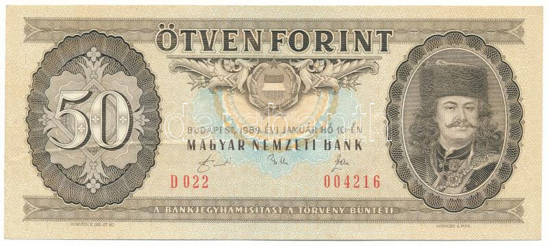1989. 50Ft "D 022 004216" T:F szép papír