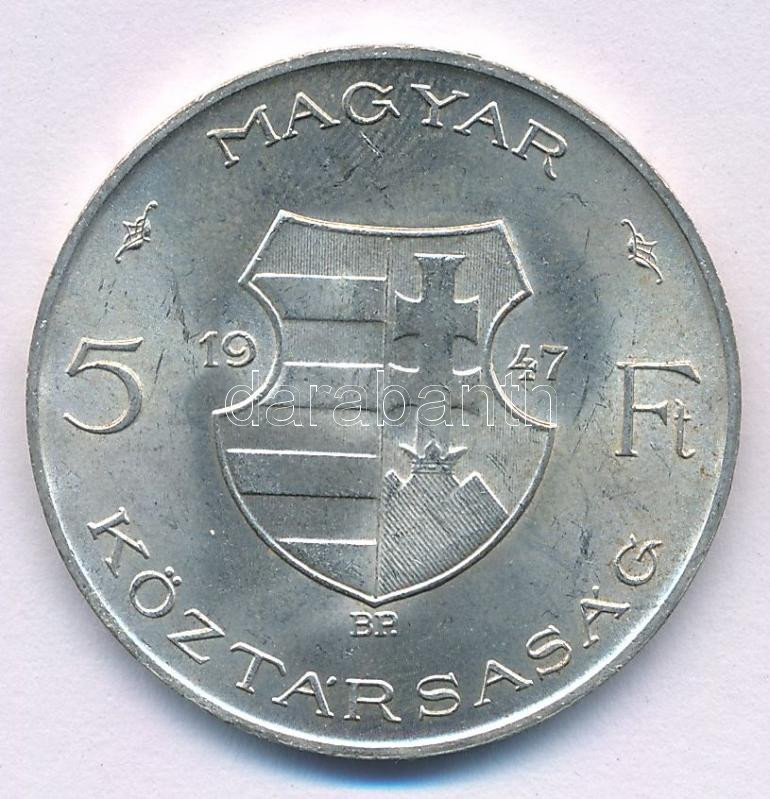 1947. 5Ft Ag "Kossuth" T:XF patina Adamo F8.1 https://www.darabanth.com/de/489-Fernauktion/489.0/Numismatik/Ungarische-Munzen-und-Munzen-mit-ungarischem-Munzzeichen~2000009/1947-5Ft-Ag-Kossuth-TXF-patina-Adamo-F81~II3229128