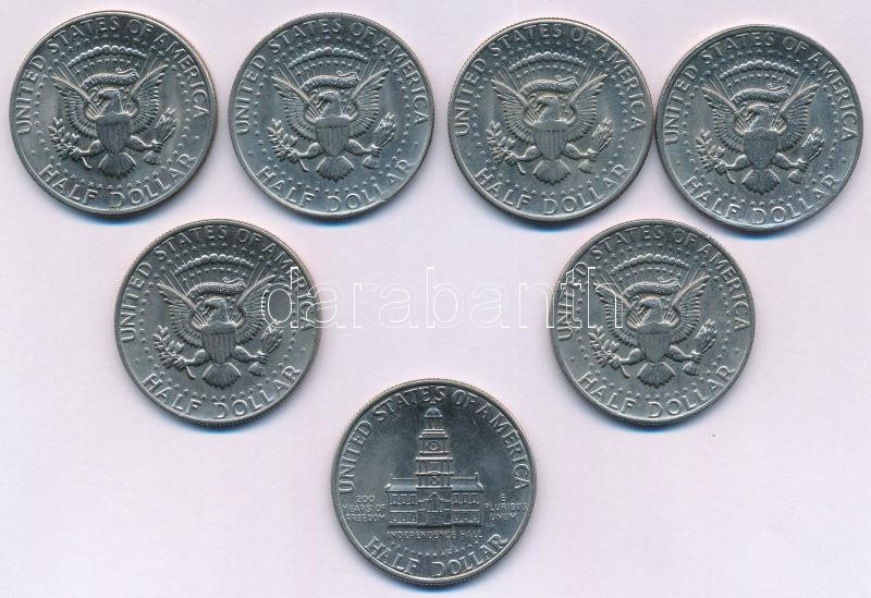 Amerikai Egyesült Államok 1971D-1980P 1/2$ Cu-Ni "Kennedy" (7xklf évszám és/vagy verdejel) közte 1976. 1/2$ Cu-Ni "A függetlenség 200. évfordulója (Bicentenárium)" T:AU,XF karc