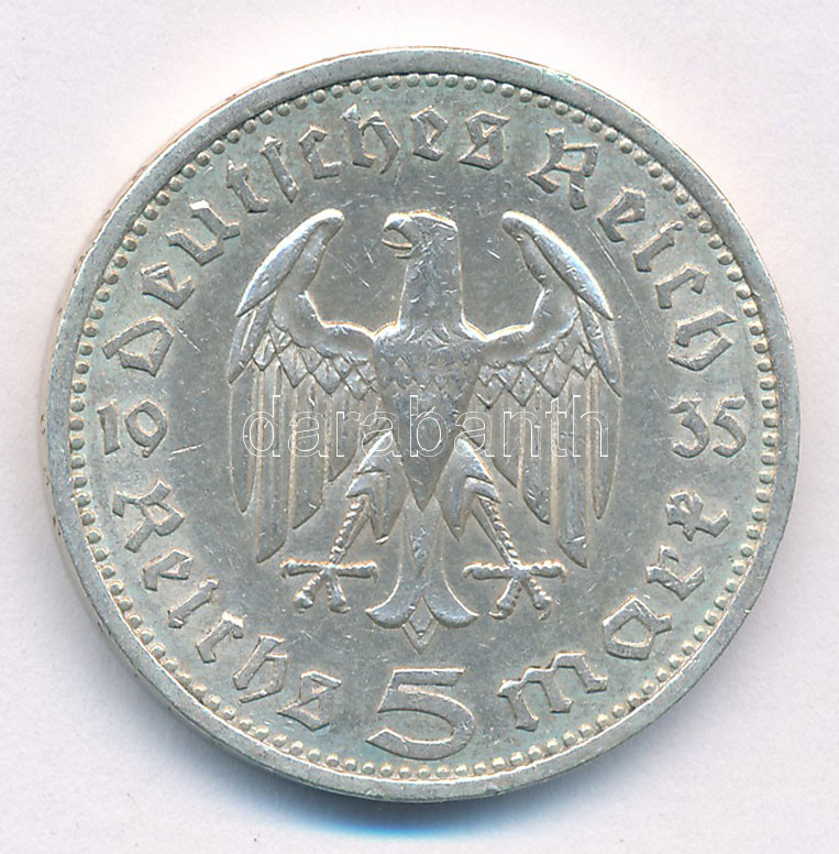 Német Harmadik Birodalom 1935A 5M Ag "Paul von Hindenburg" T... https://www.darabanth.com/de/489-Fernauktion/489.0/Numismatik/Weltweit-Munzen~2000017/Nemet-Harmadik-Birodalom-1935A-5M-Ag-Paul-von-Hindenburg-T2-German-Third-Reich-1935A-5-Reichsmar~II2789437