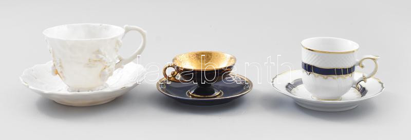 Beschreibung: 3 db mokkás és teás csésze. Hollóházi,. Ilmenau. Aranyozott, jelzett, hibátlan