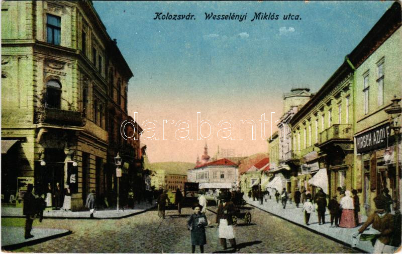 Kolozsvár, Cluj; Wesselényi Miklós utca, Hirsch Adolf üzlete / street ... https://www.darabanth.com/de/491-Fernauktion/491.0/Ansichtskarten/Siebenburgen~1500006/Kolozsvar-Cluj-Wesselenyi-Miklos-utca-Hirsch-Adolf-uzlete-street-view-shops-kopott-sarkak~II3378746