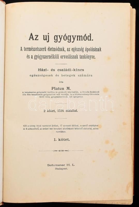 Platen M(oritz): Az új gyógymód. I. kötet. Bp.,én., Schroeter H. L. Sz... https://www.darabanth.com/de/491-Fernauktion/491.0/Bucher/Bucher-Naturwissenschaft-Medizin~1000024/Platen-Moritz-Az-uj-gyogymod-I-kotet-Bp-en-Schroeter-H-L-Szines-tablakkal-melle~II3285517