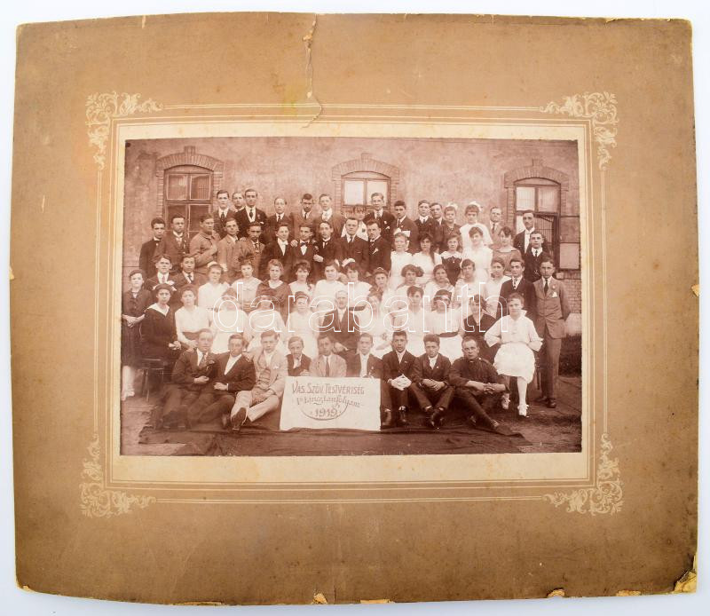 1919 Vas. Szöv. Testvériség I.ső tánctanfolyam csoportkép, sérült kart... https://www.darabanth.com/de/491-Fernauktion/491.0/Fotografie/Foto~2000025/1919-Vas-Szov-Testveriseg-Iso-tanctanfolyam-csoportkep-serult-kartonon-16x23-cm~II3376598