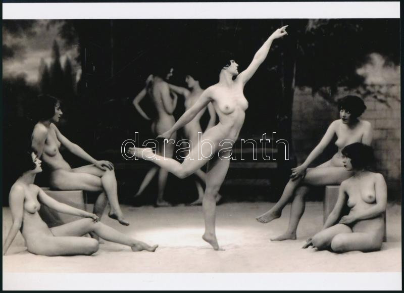 Beschreibung: cca 1910 "Szabad mozgásművészeti kompozíció", szolidan erotikus felvétel, 1 db modern nagyítás, jelzés nélkül, 15x21 cm