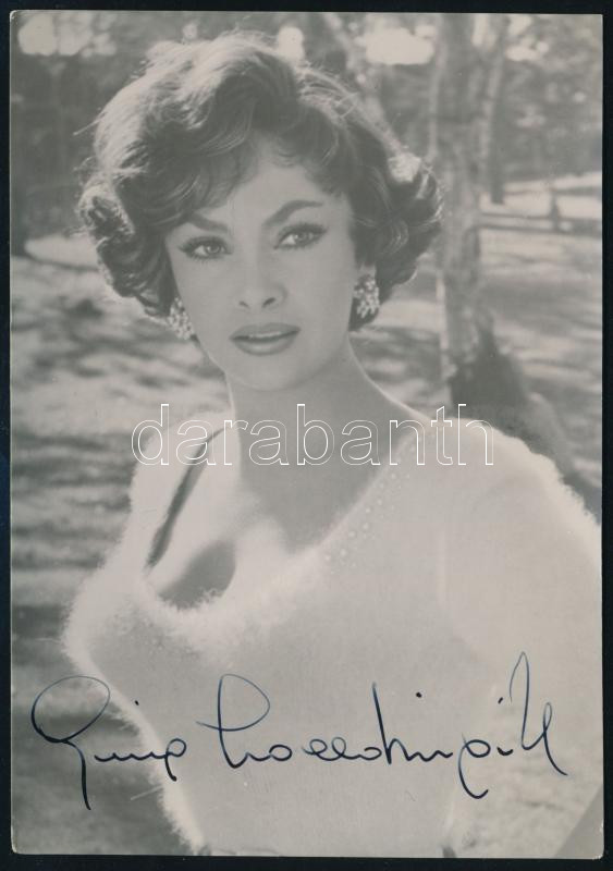 Beschreibung: Gina Lollobrigida (1927-2023) színésznő aláírt fotója