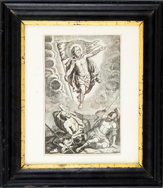 Beschreibung: Isabella Piccini (1644-1734): Jézus feltámadása. Rézmetszet, papír, jelzett a metszeten. Üvegezett fakeretben. 19,5x12,5 cm