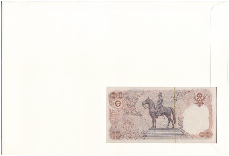 Thailand 1980. 10 Baht in envelope with stamp and cancellation C:UNC