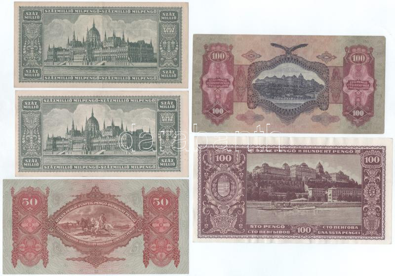 Beschreibung: 1930. 100P csillagos sorszámmal + 1932. 50P + 1945. 100P + 1946. 100.000.000MP (2x) T:XF-F, szép papír