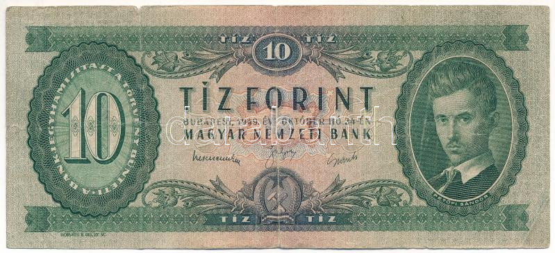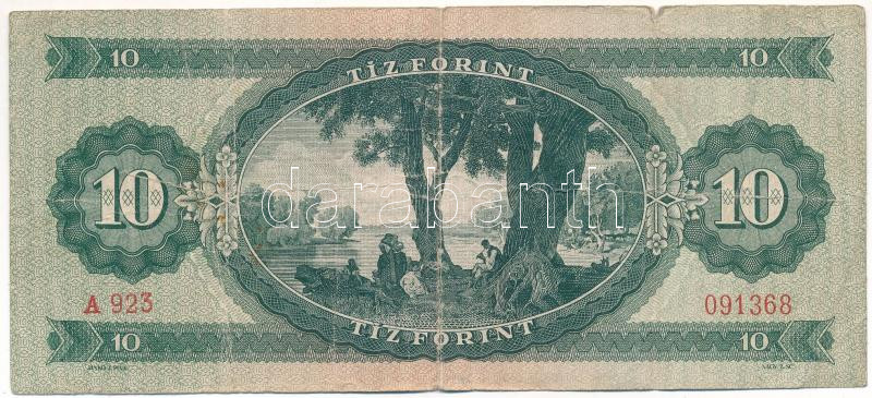 1949. 10Ft "A 923 091368" T:VG Adamo F3 https://www.darabanth.com/de/491-Fernauktion/491.0/Numismatik/Ungarische-Banknoten~2000008/1949-10Ft-A-923-091368-TVG-Adamo-F3~II3215955