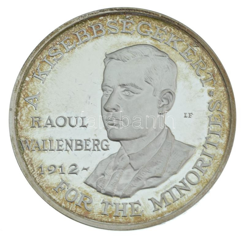 Lebó Ferenc (1960-) 1990. "Magyar Külkereskedelmi Bank - Raoul Wallenberg Egyesület / A kisebbségekért" kétoldalas jelzett Ag emlékérem dísztokban (36g/0.925/42.5mm) T:PP, patina