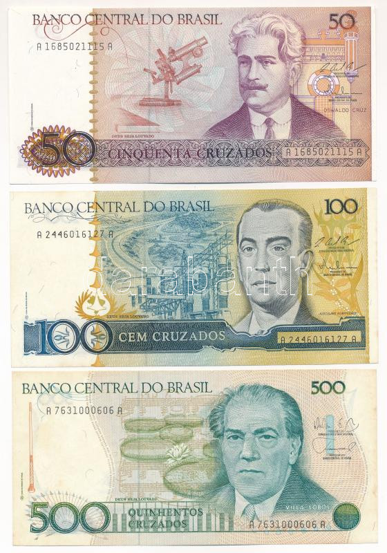 Brazília DN(1986-1988) 50C + DN(1986-1988) 100C + DN(1986-1988) 500C T... https://www.darabanth.com/de/491-Fernauktion/491.0/Numismatik/Weltweit-Banknoten~2000014/Brazilia-DN1986-1988-50C-plus-DN1986-1988-100C-plus-DN1986-1988-500C-TUNC-AU-Brasil-ND1986-1988-~II3244355
