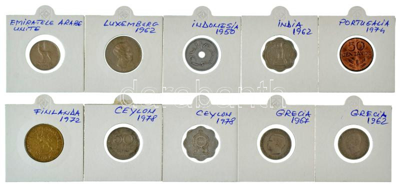 10xklf külföldi érme ablakos érmetartó tokban, benne: India, Srí Lanka, Portugália, Finnország, Indonézia, Luxemburg, Egyesült Arab Emirátusok, Görögország T:vegyes