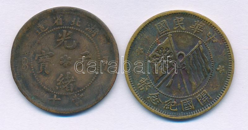 Kína DN(1902-1905) 10 Cash Cu "Guangxu" + DN(1912) 10 Cash Cu "A köztársaság megalapítása" T:VF, patina