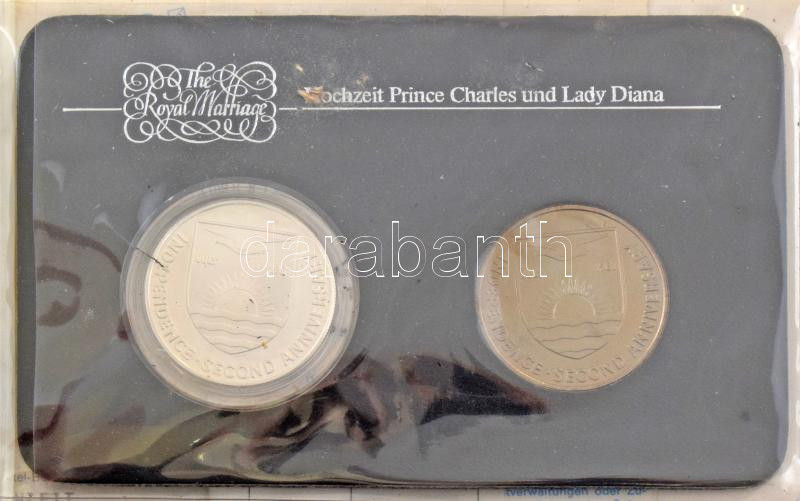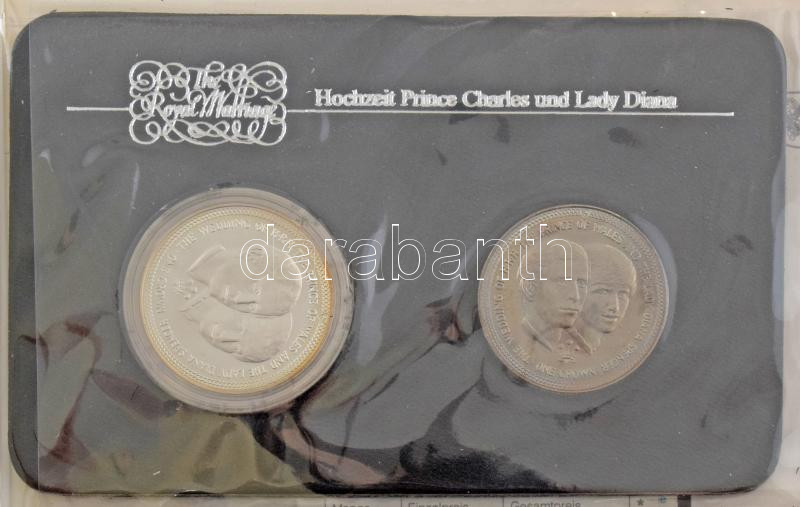 Nagy Britannia 1981. "Diana és Károly herceg esküvÅ‘je 1981. Július 29." Brit és nemzetközösségi kiadások (összesen 47xklf ebbÅ‘l 24xklf Ag), mind albumokba rendezve nagyon szép állapotban. Minden érme tanúsÃtvánnyal és leÃrással. A tételben Ascension Sziget 1981. 25P Ag + 25P Cu-Ni; Ausztrália 1981. 50c Cu-Ni; Bahamák 1981. 10$ Ag; Bermuda 1981. 1$ Ag + 1$ Cu-Ni; Falkland Szigetek 50P Ag + 50P Cu-Ni; Gibraltár 1981. 1C Ag + 1C Cu-Ni; Guersney 1981. 25P Ag + 25P Cu-Ni; Jamaika 1981. 10$ Ag; Jersey 1981. 2P Ag + 2P Cu-Ni; Kajmán szigetek 1981. 10$ Ag; Kiribati 1981. 5$ Ag + 5$ Cu-Ni; Lesotho 1981. 30M Ag; Man Sziget 1981. 1C Ag + 1C Cu-Ni; Man Sziget 1981. 1C Ag; Man Sziget 1981. 1C Ag (2x) + 1C Cu-Ni; Man Sziget 1982. 1/2p - 50p Cu-Ni (7xklf) "Királyi EsküvÅ‘ forgalmisor"; Mauritius 1981. 10R Ag + 10R Cu-Ni; Nagy Britannia 1C Ag + 1C Cu-Ni; Nyugat-Indiai Föderáció 1981. 10$ Ag + 10$ Cu-Ni; Nyugat Szamoa 1981. 10$ Ag; Szent-Ilona sziget 1981. 25P Ag + 25P Cu-Ni; Tristan da Cunha 1981. 25P Ag + 25P Cu-Ni; Turks- és Caicos Szigetek 1981. 10C Ag; Tuvalu 1981. 5$ Ag + 5$ Cu-Ni; Uganda 1981. 100Sh Ag T:PP,BU,UNC (eredetileg PP) Great Britain 1981. "The Marriage of Diana and Prince Charles 1981. July 29." British and Commonwealth spending (47xdiff, of which 24xdiff silver), all sorted into albums in very fine conditions. All coins with certifications and descriptions. In the lot Ascension Island 1981. 25 Pence Ag + 25 Pence Cu-Ni; Australian 1981. 50 Cents Cu-Ni; Bahamas 1981. 10 Dollars Ag; Bermuda 1981. 1 Dollar Ag + 1 Dollar Cu-Ni; Cayman 1981. 10 Dollars Ag; Falkland Island 1981. 50 Pence Ag + 50 Pence Cu-Ni; Gibraltar 1981. 1 Crown Ag + 1 Crown Cu-Ni; Great Britain 1 Crown Ag + 1 Crown Cu-Ni; Guersney 1981. 25 Pence Ag + 25 pence Cu-Ni; Isle of Man 1981. 1 Crown Ag; Isle of Man 1981. 1 Crown Ag + 1 Crown Cu-Ni; Isle of Man 1981. 1 Crown Ag (2x) + 1 Crown Cu-Ni; Isle of Man 1982. 1/2 Penny - 50 Pence Cu-Ni (7xdiff) "The Royal Marriage" coinset; Jamaica 1981. 10 Dollars Ag; Jersey 1981. 2 Pounds Ag + 2 Pounds Cu-Ni; Kiribati 1981. 5 Dollars Ag + 5 Dollars Cu-Ni; Lesotho 1981. 30 Meloti Ag; Mauritius 1981. 10 Rupees Ag + 10 Rupees Cu-Ni; St. Helena Island 1981. 25 Pence Ag + 25 Pence Cu-Ni; Tristan da Cunha 1981. 25 Pence Ag + 25 Pence Cu-Ni; Turks- and Caicos Island 1981. 10 Crown Ag; Tuvalu 1981. 5 Dollars Ag + 5 Dollars Cu-Ni; Uganda 1981. 100 Schillings Ag; West-Indian Federation 1981. 10 Dollars Ag + 10 Dollars Cu-Ni; West Samoa 1981. 10 Dollars Ag C:PP,BU,UNC (originally PP)