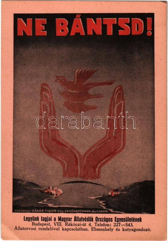 Ne bántsd! Magyar Állatvédők Országos Egyesületének Állatvédelmi Levelezőlapja. Budapest VII. Rákóczi út 4. / Hungarian animal protection propaganda card s: Vákár Tibor (EK)