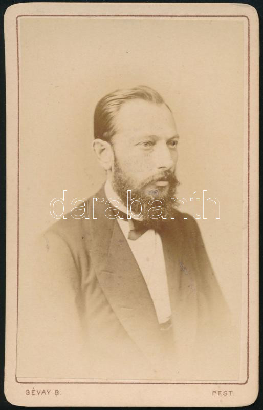 cca 1870 Férfiportré, keményhátú fotó Gévay pesti műterméből, 10,5×6,5... https://www.darabanth.com/de/493-Fernauktion/493.0/Fotografie/Foto~2500118/cca-1870-Ferfiportre-kemenyhatu-foto-Gevay-pesti-mutermebol-10-5x6-5-cm~II3383515