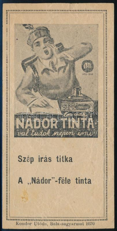 Nádor tinta számolócédula https://www.darabanth.com/de/493-Fernauktion/493.0/Kunst-Dokumente-andere-Sammelgebiete/Werbungen~1500002/Nador-tinta-szamolocedula~II3382895