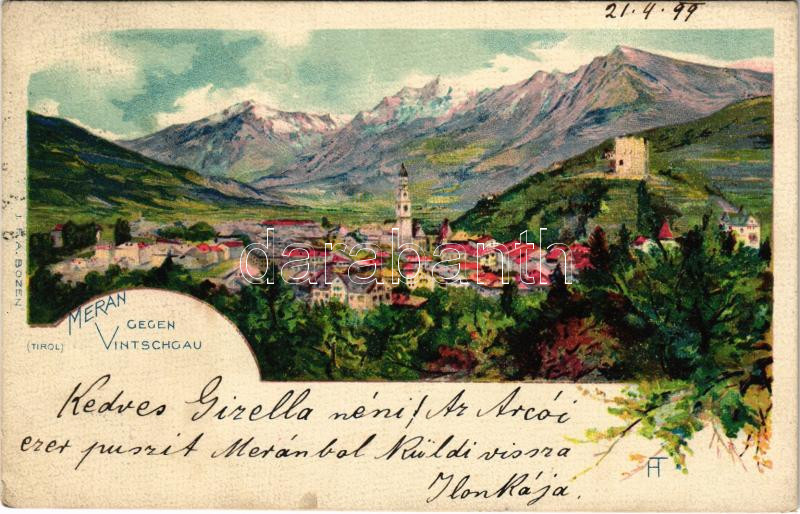 Beschreibung: 1899 (Vorläufer) Merano, Meran (Südtirol); Gegen Vintschgau / general view. litho (EK)