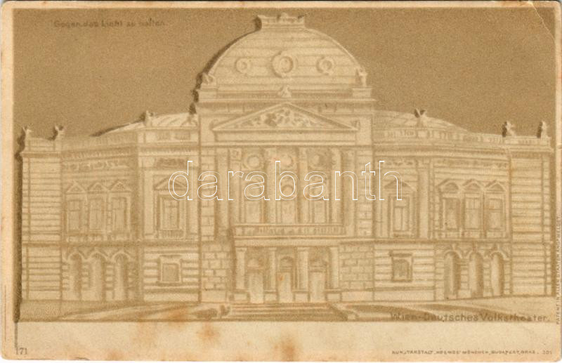 Beschreibung: Wien, Vienna, Bécs; Deutsches Volkstheater / theatre, Kunstanstalt 'Kosmos' 301. hold to light litho (fl)