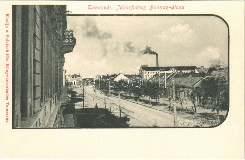 Beschreibung: Temesvár, Timisoara; Józsefváros, Bonnáz utca, háttérben a Józsefvárosi pályaudvar, vasútállomás. Polatsek kiadása / street view, railway station