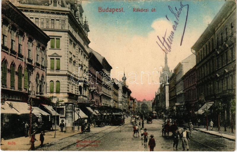 1910 Budapest VII. Rákóczi út, villamos, Hotel Metropol szálloda, üzle... https://www.darabanth.com/de/496-Fernauktion/496.0/Ansichtskarten/Ungarn~2500005/1910-Budapest-VII-Rakoczi-ut-villamos-Hotel-Metropol-szalloda-uzletek-hatterben-a-Keleti~II3280094