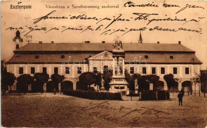 1917 Esztergom, Városháza, Szentháromság szobor https://www.darabanth.com/de/496-Fernauktion/496.0/Ansichtskarten/Ungarn~2500005/1917-Esztergom-Varoshaza-Szentharomsag-szobor~II3251098
