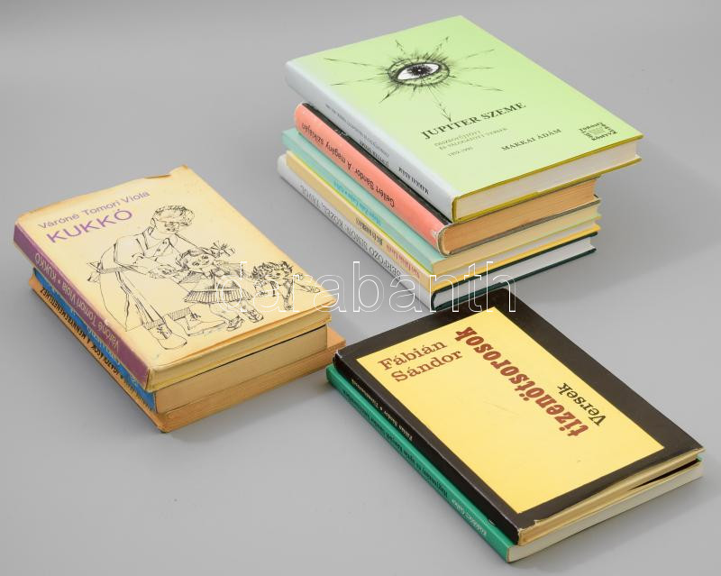 10 db dedikált könyv - Csiki László: Idegen tollaim, Nikolits Árpád: igazolások a mennybemenetelhez, Váróné Tomori Viola: Kukkó, Ködöböcz Gábor: Hagyomány és újítás Kányádi Sándor költészetében, Makkai Ádám: Jupiter szeme + Serfőző Simon, Gellért Sándor, Fábián Sándor, stb.