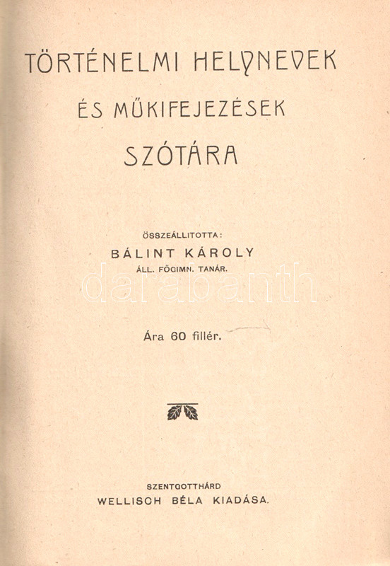 Bálint Károly főgimnáziumi tanár történelmi fogalomtára. Az előszóban a szerző felsorolja a történelem fő tényezőit, melyek elsője a gondviselés, második tényezője az emberi szellem, rajtuk kívül pedig külső okok is munkálkodnak.