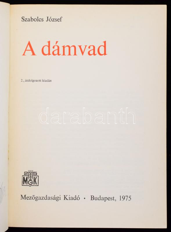 Szabolcs József: A dámvad. Bp.,1975., Mezőgazdasági. Második, átdolgoz... https://www.darabanth.com/de/496-Fernauktion/496.0/Bucher/Bucher-Jagd~2000109/Szabolcs-Jozsef-A-damvad-Bp-1975-Mezogazdasagi-Masodik-atdolgozott-kiadas-Fekete-fehC3~II3392577