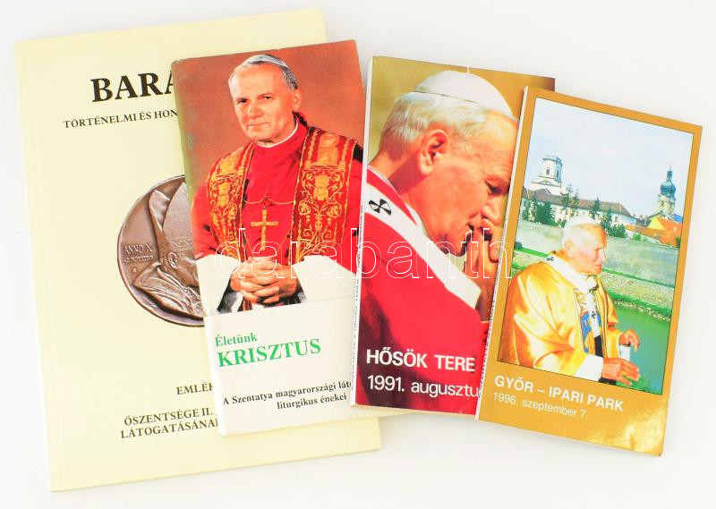 II. János Pál pápával kapcsolatos könyvtétel: Életünk Krisztus. A Szentatya magyarországi látogatásának liturgikus énekei. Eger, 1990. + A Szentatya a Hősök terén 1991. augusztus 20. Bp., 1991. + Szentmise a Szentatyával Győrben 1996. szeptember 7. + Baranya Történelmi és Honismereti Folyóirat emlékszám: Őszentsége II. János Pál pápa látogatásának tiszteletére. Pécs, 1991. Kiadói papírkötés.