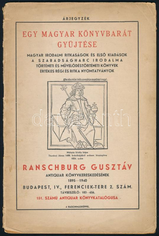 1940 Ranschburg Gusztáv Antiquar Könyvkereskedésének 151. számú antiqu... https://www.darabanth.com/de/496-Fernauktion/496.0/Kunst-Dokumente-andere-Sammelgebiete/Drucksachen~500016/1940-Ranschburg-Gusztav-Antiquar-Konyvkereskedesenek-151-szamu-antiquar-konyvkatalogusa-sz~II2908194