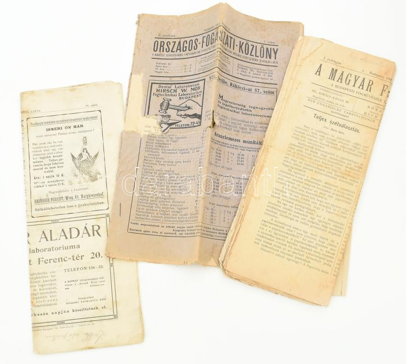 cca 1907-1940 Fogászati újságok, nyomtatványok, 5 db, változó állapotb... https://www.darabanth.com/de/496-Fernauktion/496.0/Kunst-Dokumente-andere-Sammelgebiete/Drucksachen~500016/cca-1907-1940-Fogaszati-ujsagok-nyomtatvanyok-5-db-valtozo-allapotban-serulesekkel~II3126022