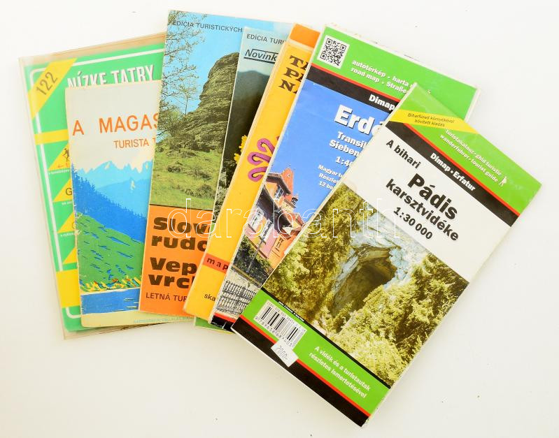 Beschreibung: 2 db Erdély + 7 db Csehszlovákia, Tátra turistatérkép (össz. 9 db), vegyes állapotban