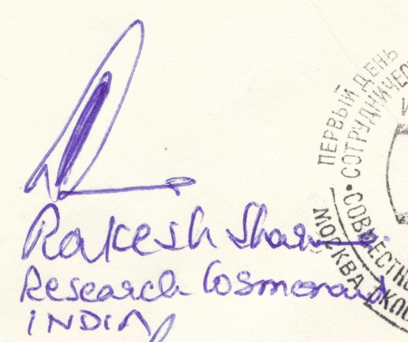 Beschreibung: Rakesh Sharma (1949- ) indiai űrhajós aláírásai emlékborítékon /