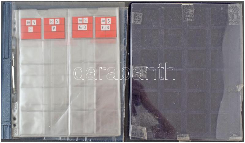 Gyűrűs mappa 7db berakólappal klf méretű érmék számára, használt, újszerű állapotban + érmetartó tálca, benne 24db 3x3cm-es férőhellyel, használt állapotban