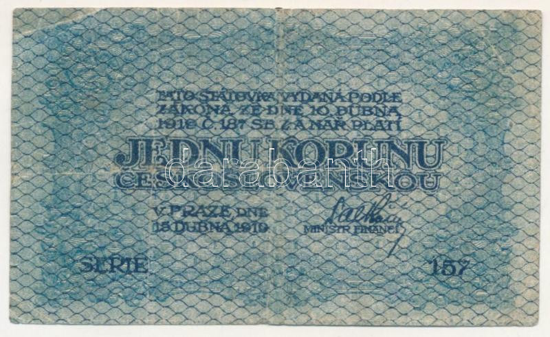 Czechoslovakia 1919. 1 Ko... https://www.darabanth.com/de/496-Fernauktion/496.0/Numismatik/Weltweit-Banknoten~1500015/Csehszlovakia-1919-1K-157-TVG3Cbr-3E-Czechoslovakia-1919-1-Koruna-157-CVG3Cbr-3E-Krause-P236~II3390731